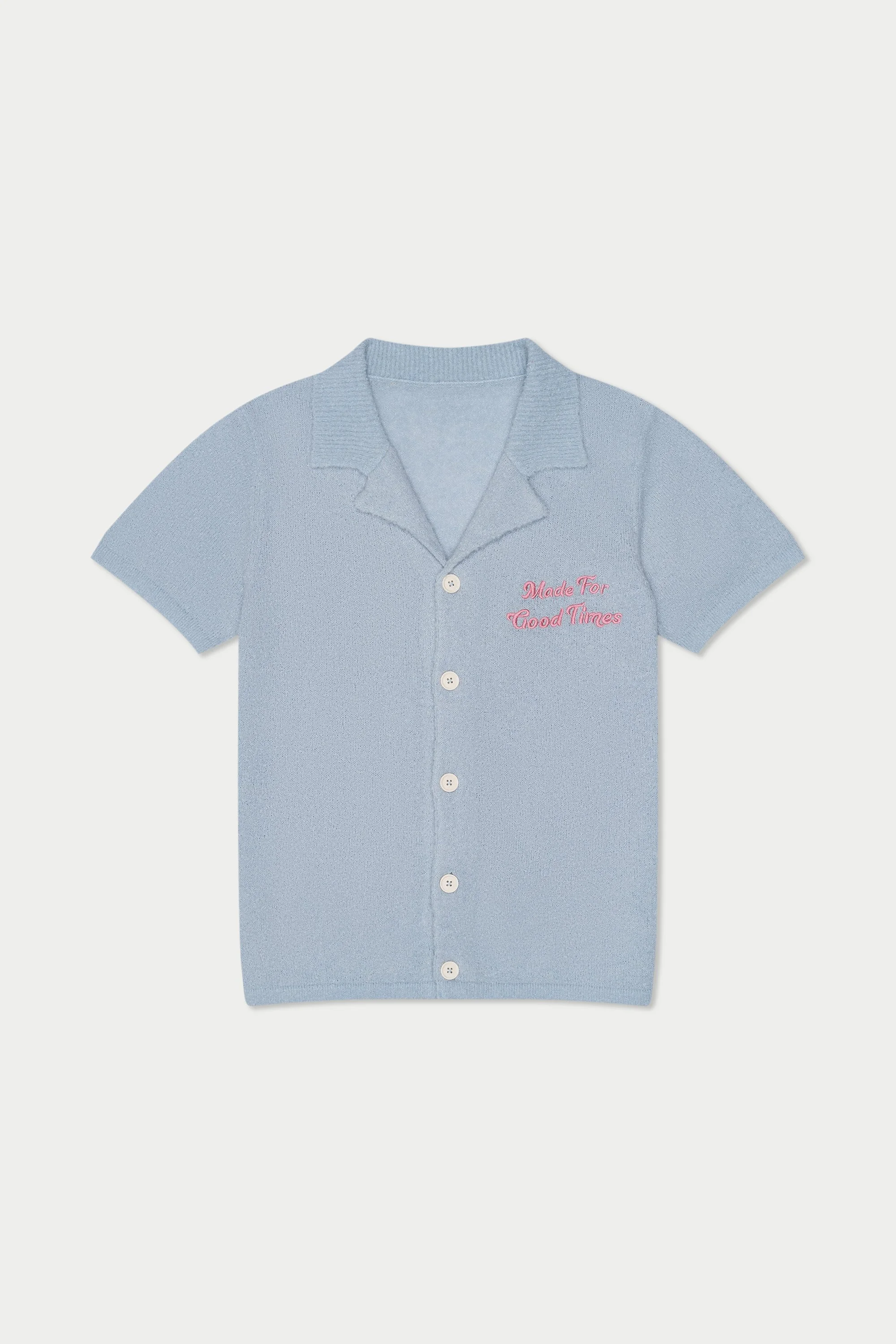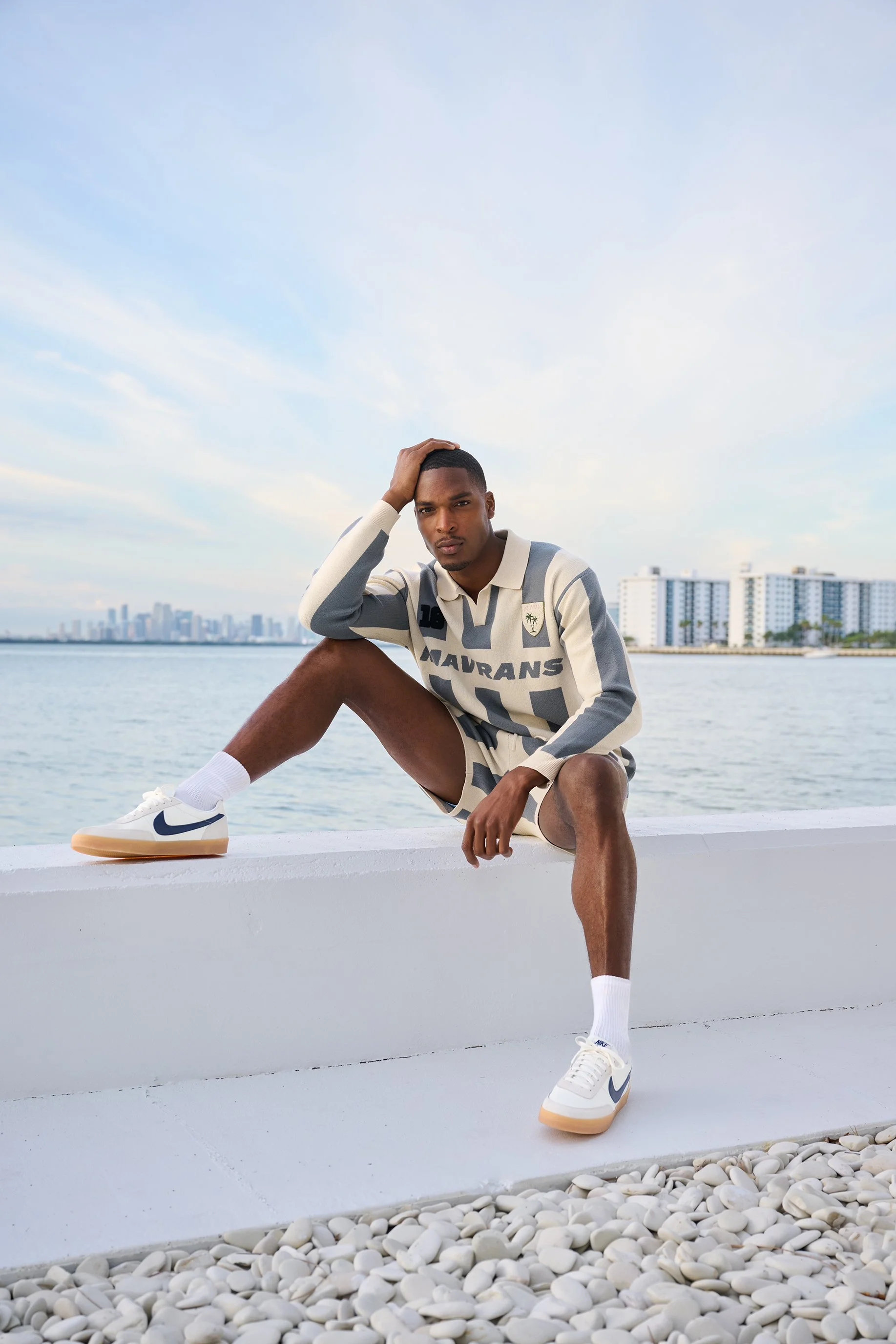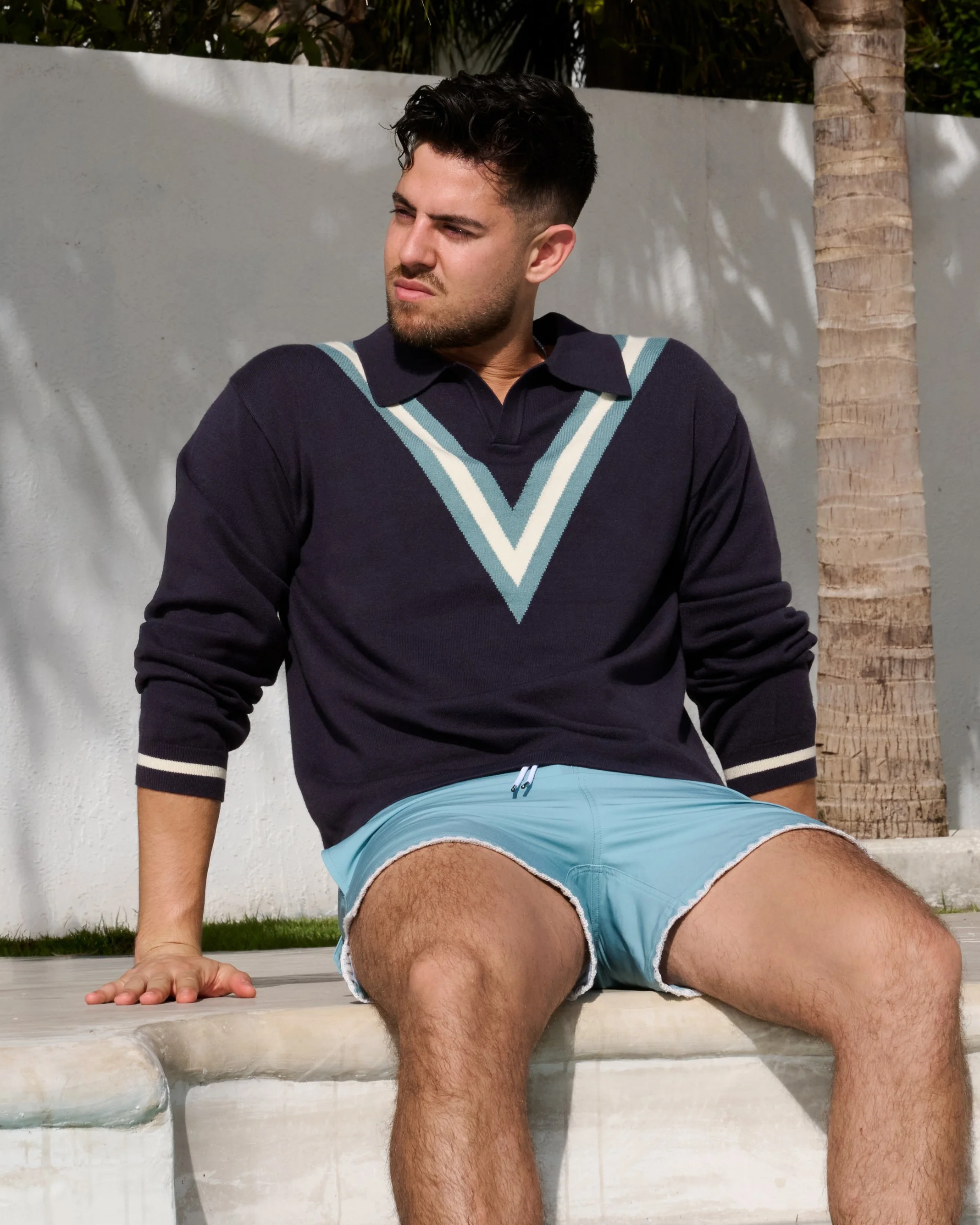 Palm tree motifs embroidered and printed on polos, shorts, and crew sweaters.