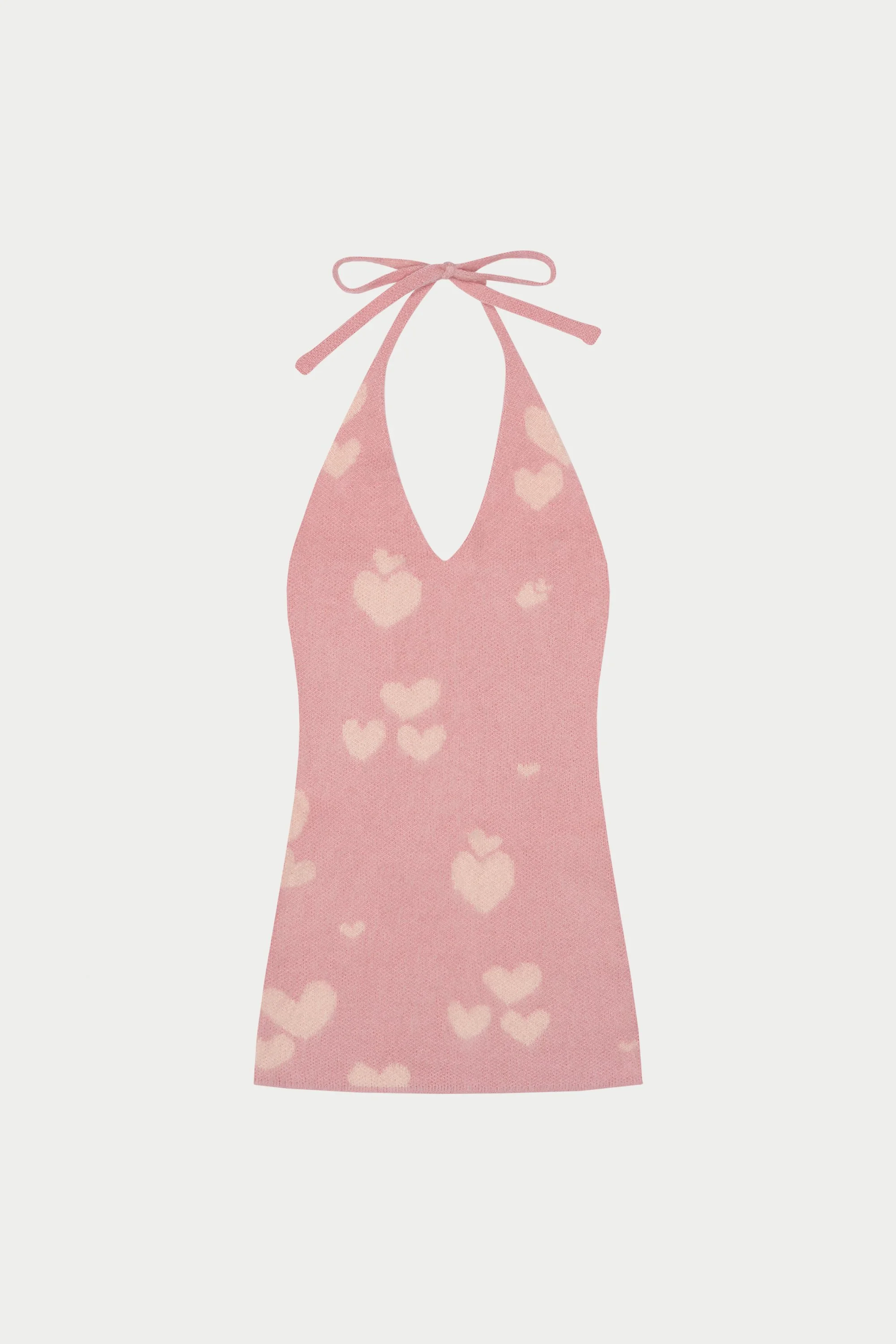 Heart motifs on knit mohair and reCOCOBLEND swim material.