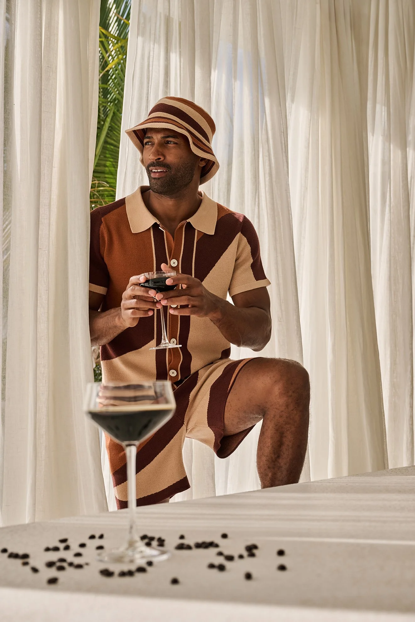 Oversized coffee bean print on knits; t-shirt and hat typography collaboration.